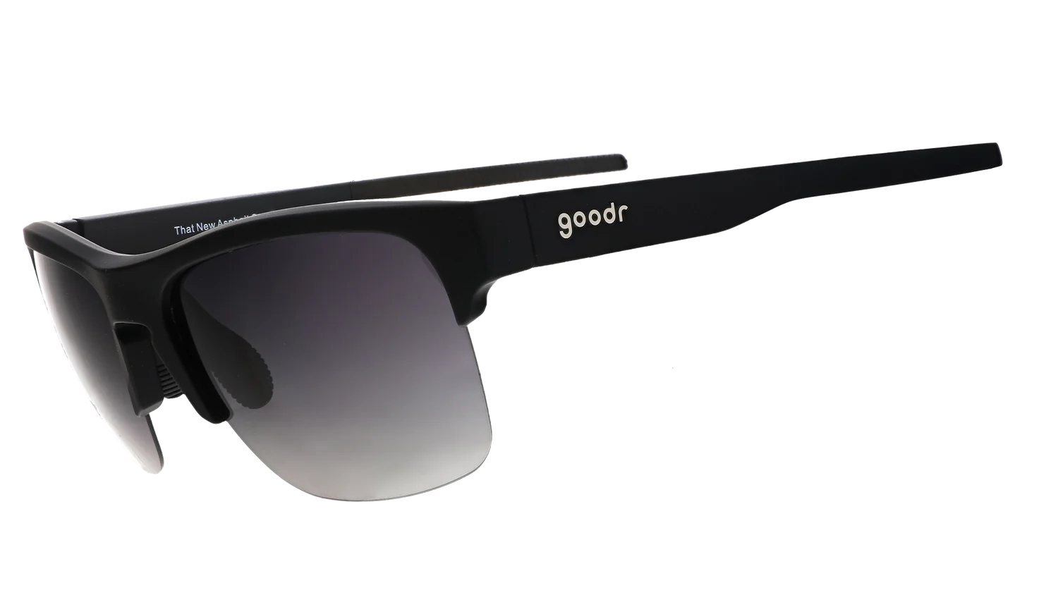 Es geht doch nichts über den nostalgischen Geruch von neuem Asphalt. Nein? Nur wir? Nun, DIES ist unangenehm... ob Sie den Geruch nun mögen oder hassen, Sie werden diese Brille LIEBEN: die perfekte Halbbrille mit zwei Gläsern, einem voll verstellbaren Nasensteg und schwarzen Verlaufsgläsern.