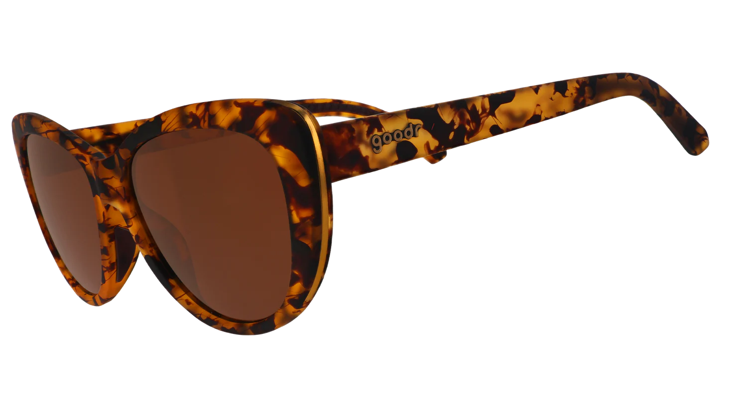 ME-OW!!! Mit dieser extrem modischen Sonnenbrille aus braunem Schildpatt mit braunen, nicht verspiegelten Gläsern und goldenen Akzenten bist du auf der wilden Seite. WARNUNG: Das Tragen kann aufgrund von extremem Stilneid zu einem Anstieg von Catfights runway führen.
